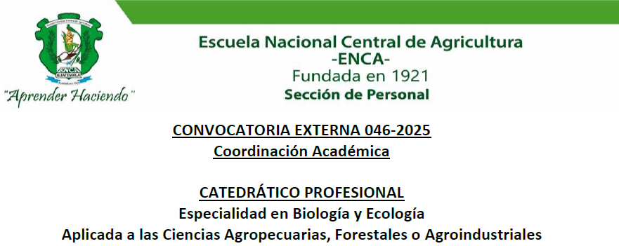 Bienvenidos a la Escuela Nacional Central de Agricultura -ENCA-